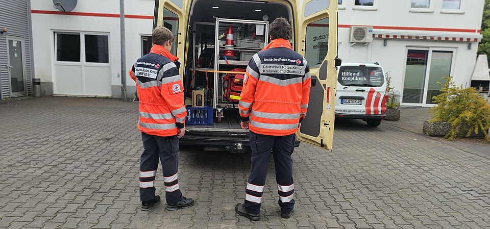 Das Sonderfahrzeug Betreuungskombi 2.0 des DRK Gladbeck gibt es im Kreis Recklinghausen nur einmal. Ausgestattet mit Material für eine Anlaufstelle für Betroffene und mit Sicherungsmitteln für Rollstuhltransporte.