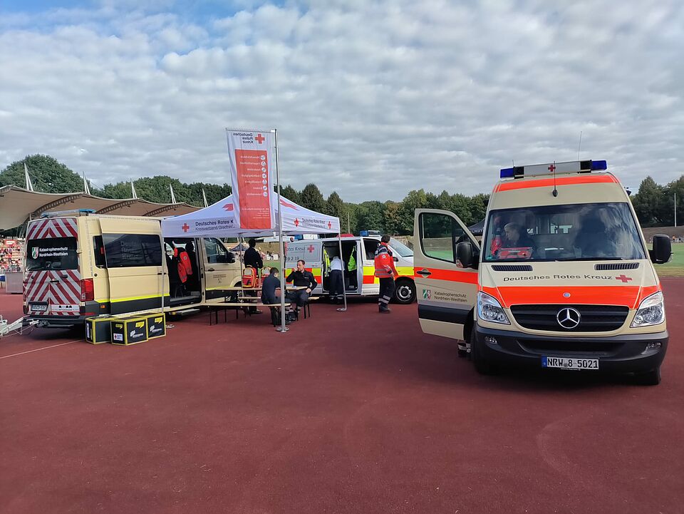 Am Sonntag, 24.08.2025 haben 12 ausgebildete ehrenamtliche Gladbecker Rotkreuzler den 20. Gladbecker Sparkassenverlauf im Rahmen eines Sanitätsdienstes betreut und die standen für Notfälle parat.
