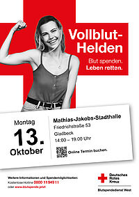 Das Rote Kreuz Gladbeck ruft am Montag, 08.09.2025 von 14 Uhr bis 19 Uhr zur Blutspende in der Gladbecker Stadthalle auf.